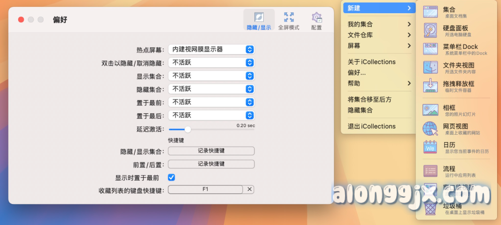 iCollections for Mac是一款专为Mac用户设计的桌面整理工具,以其精致设计和独特功能帮助用户保持桌面整洁有序。通过在桌面创建区域对图标进行排序和排列,iCollections使得文件管理变得条理化,方便用户快速找到图片、文档、屏幕截图和应用程序等文件。此外,它还支持在桌面直接显示网站,如Facebook、YouTube、Twitter等,提升任务和时间管理效率。
