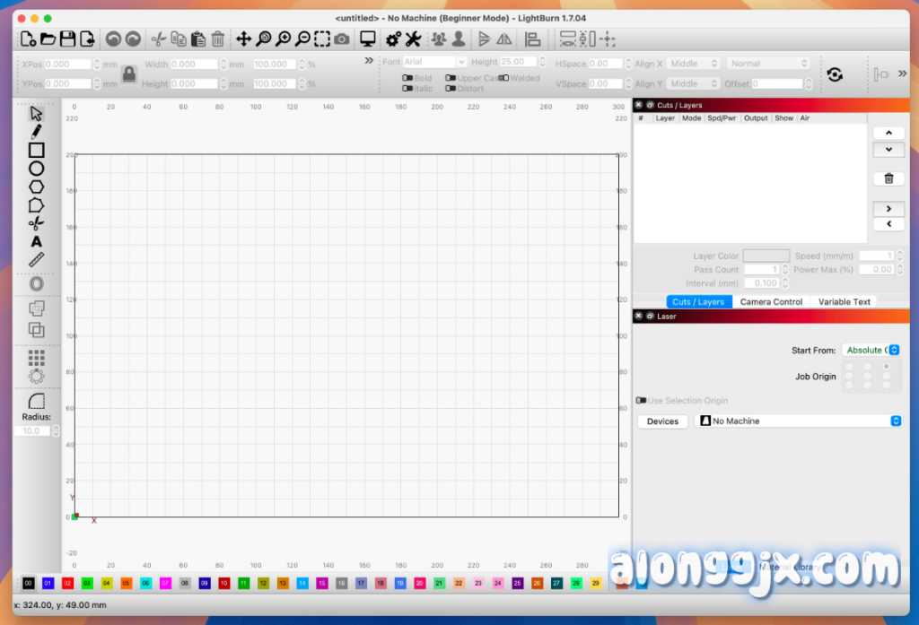 LightBurn for Mac 是一款专业激光切割软件,是专为激光切割机设计的布局、编辑和控制的软件,它支持多种常见矢量图形和图像格式的导入,提供强大的编辑器以安排、编辑甚至创建新的矢量形状,并允许用户应用多种设置,如功率、速度、通过次数、切割顺序等,以实现精准的激光切割。