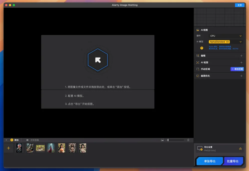 Aiarty Image Matting for Mac 是一款专为电商和设计领域打造的AI图像抠图软件,能够批量替换产品图片背景,智能识别和处理多达 3000 张产品照片。它采用先进的 AI 框架和边缘细化算法,提供高精度的 Alpha 抠图,精准捕捉头发、毛发等边缘细节,非常适合复杂抠图任务。软件还优化了半透明物体抠图效果,能够保留婚纱、蕾丝、玻璃等复杂特征的透明属性,确保与新背景的自然融合。