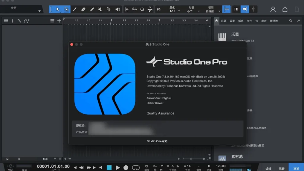 PreSonus Studio One Pro 7 for Mac是一款专为音乐制作人、录音师和音频工程师设计的数字音频工作站(DAW),提供从创作到母带处理的全方位解决方案。它以高效、直观的工作流程和卓越的音频性能著称,是音乐制作领域的强大工具。