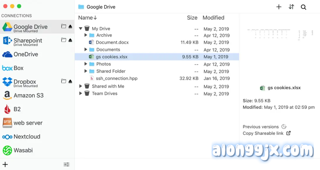 - 文件版本管理:对于支持版本管理的云存储服务(如 Box、Dropbox、S3、Google Drive 等),用户可以通过 ExpanDrive 轻松访问文件的旧版本,方便文件的恢复和历史记录查看。