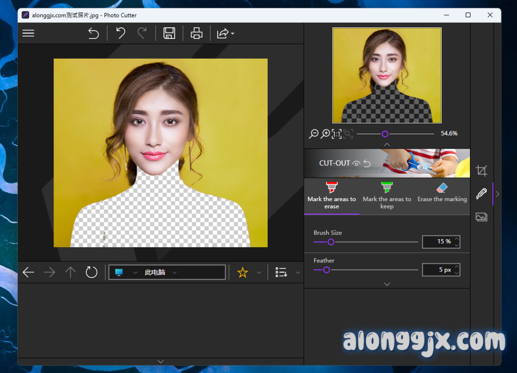 - 智能抠图算法:自动识别并去除背景,支持通过鼠标选择对象或背景,精准抠出复杂细节,如头发和透明物体。