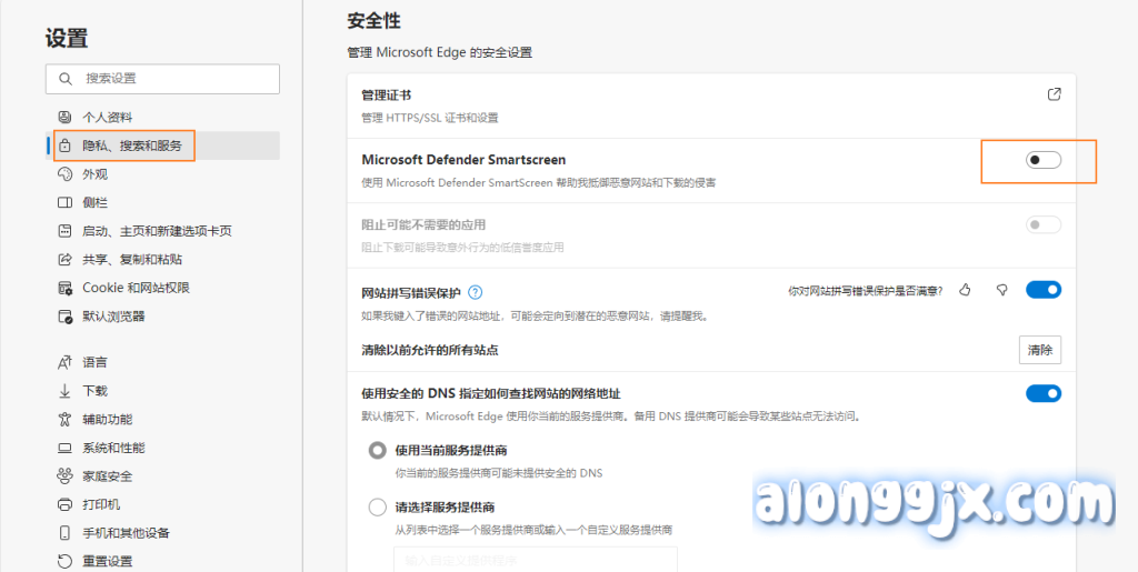 edge浏览器提醒此网站已被人举报不安全,但是我们使用确实没遇到问题的情况,一般是Microsoft Defender SmartScreen的问题 ,关闭它即可。具体根据自己的情况来o((⊙﹏⊙))o,一定要确保安全。