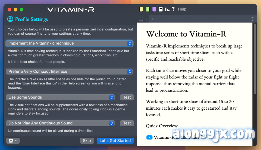 Vitamin-R for Mac 是一款专为 Mac 用户设计的时间管理和专注力提升工具,通过将任务分解为短时间的专注工作单元和休息时间,帮助用户克服拖延、保持动力并提高工作效率。它不仅支持与传统任务管理工具的集成,还具备多种个性化功能,适合不同工作节奏和需求的用户。