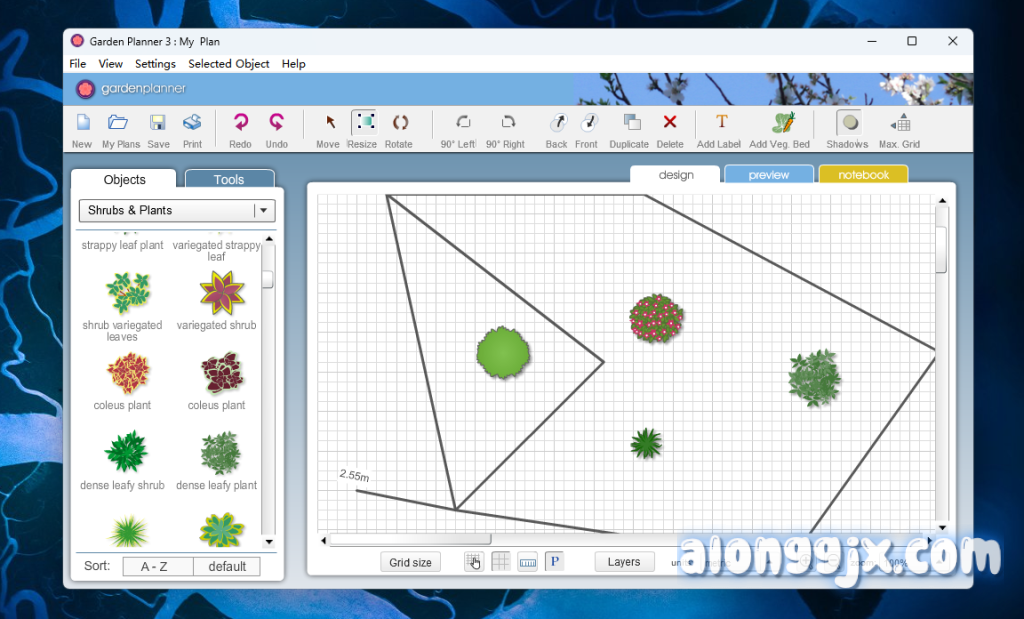 - 直观的拖放界面:通过简单的拖放操作,用户可以轻松安排植物、树木、建筑物和各种对象,快速构建花园布局。