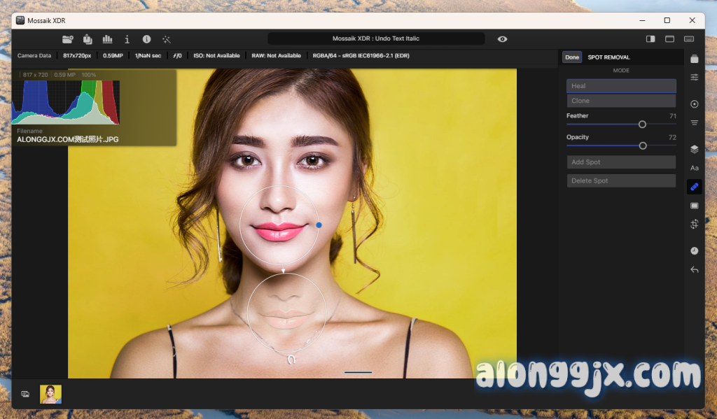 - 智能克隆和修复工具:强大的克隆工具支持从一个区域选择内容并应用到另一个区域,支持羽化工具和不透明度控制,实现精准的图像修复。