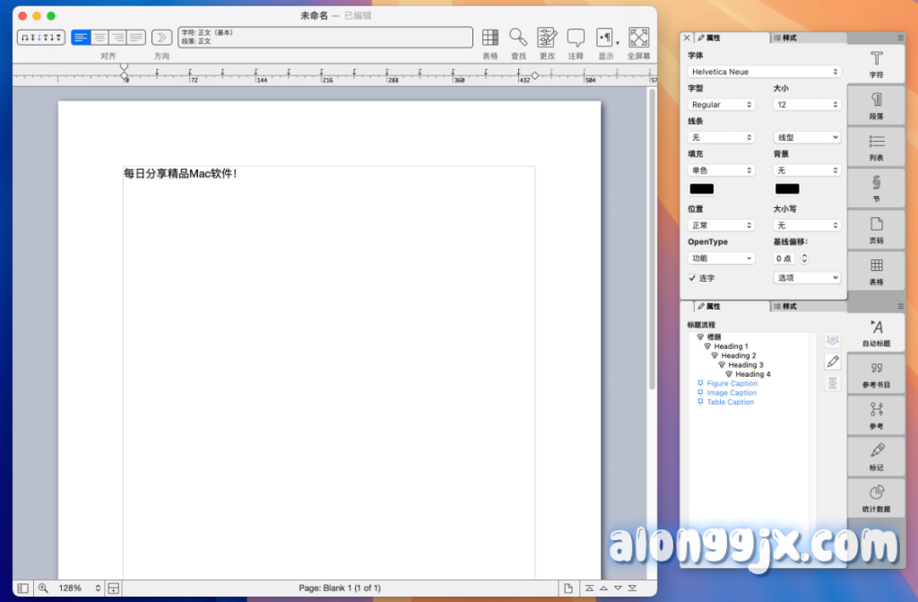- 暗黑模式支持:Mellel 6 支持 macOS 的暗黑模式,用户可以根据自己的喜好选择界面和文档内容的显示方式。暗黑模式不仅美观,还能减少视觉疲劳,提供更专注的写作环境。