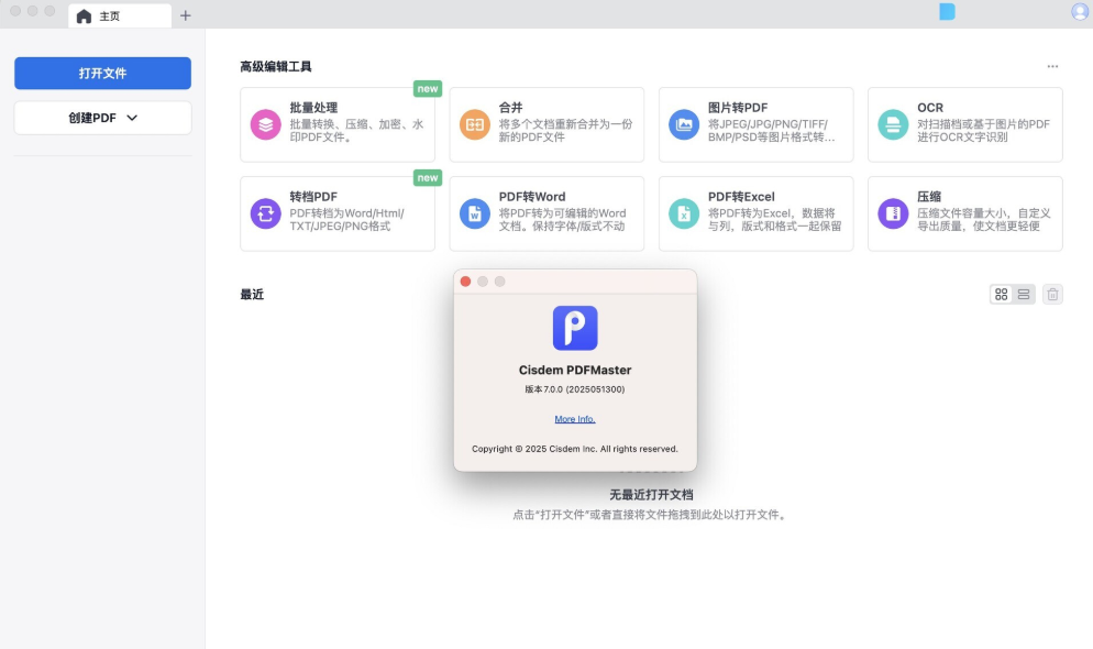 Cisdem PDFMaster 是一款集 PDF 转换、OCR 识别、编辑、合并、压缩、加密解密、签名与批量处理于一体的 macOS 全能 PDF 解决方案,通过原生 64 位引擎、苹果级 UI 与 macOS 深度整合,让个人与企业用户无需 Acrobat 即可在本地一站式完成从扫描到交付的全部 PDF 工作流,是目前 Mac 平台效率最高、功能最完整的 PDF 生产力工具之一。