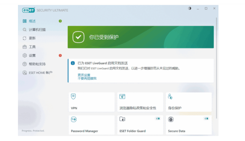 - ESET LiveSense AI 实时防护:本地+云端双引擎,每日更新 30 万次病毒库,99.9% 拦截勒索软件、木马、零日与脚本攻击。