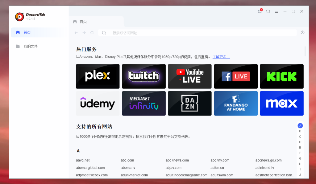 RecordFab是一款专为流媒体视频录制而生的全能高清录制软件,它通过内置智能浏览器自动检测并高速录制Netflix、Disney+、Amazon Prime等500+平台的1080P/4K内容,输出无弹窗干扰、无水印、可离线永久保存的MP4/MKV文件,彻底告别传统屏幕录像模糊、卡顿、操作繁琐的痛点。