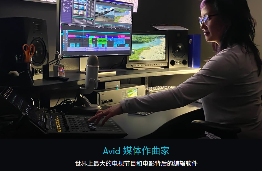 - 深度硬件集成:与 Avid Artist | DNxIQ、DNxIV、MBOX Studio 及第三方 AJA、Blackmagic I/O 卡无缝连接,提供 12G-SDI、HDR 监看。