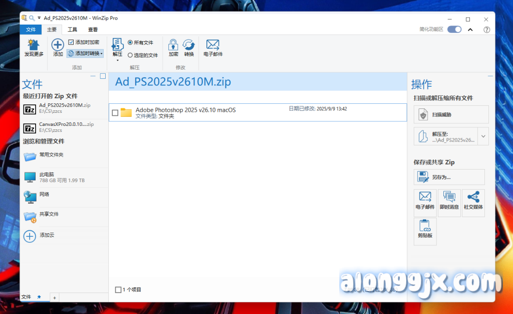 WinZip Pro 是一款功能强大的文件压缩与解压软件,广泛应用于个人和企业用户中。它支持多种压缩格式,包括 ZIP、RAR、7Z、TAR、GZIP 等,能够帮助用户高效地压缩和解压文件,节省存储空间并加快文件传输速度。WinZip Pro 不仅提供了基本的压缩功能,还集成了文件加密、备份、云存储集成等专业功能,确保用户数据的安全性和便捷性。其用户友好的界面和直观的操作流程,使得即使是初学者也能轻松上手。此外,WinZip Pro 还支持批量处理和自动化任务,大大提高了工作效率。无论是日常文件管理还是专业数据备份,WinZip Pro 都是一个值得信赖的选择。