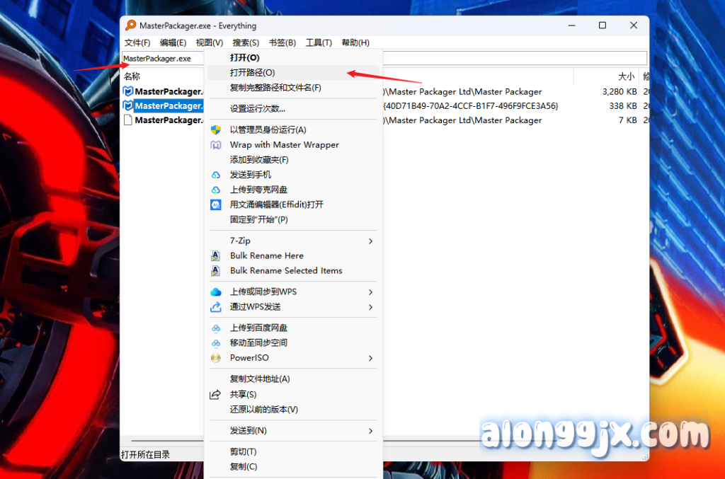 如果软件安装要求不能提前打开软件的情况下请使用Everything软件(官网地址:https://www.voidtools.com/zh-cn/support/everything/),在搜索栏中,输入 Master Packager 相关的关键文件名(比如主程序可能的名称,如 MasterPackager.exe 等),看能否找到程序的可执行文件,进而确定根目录。