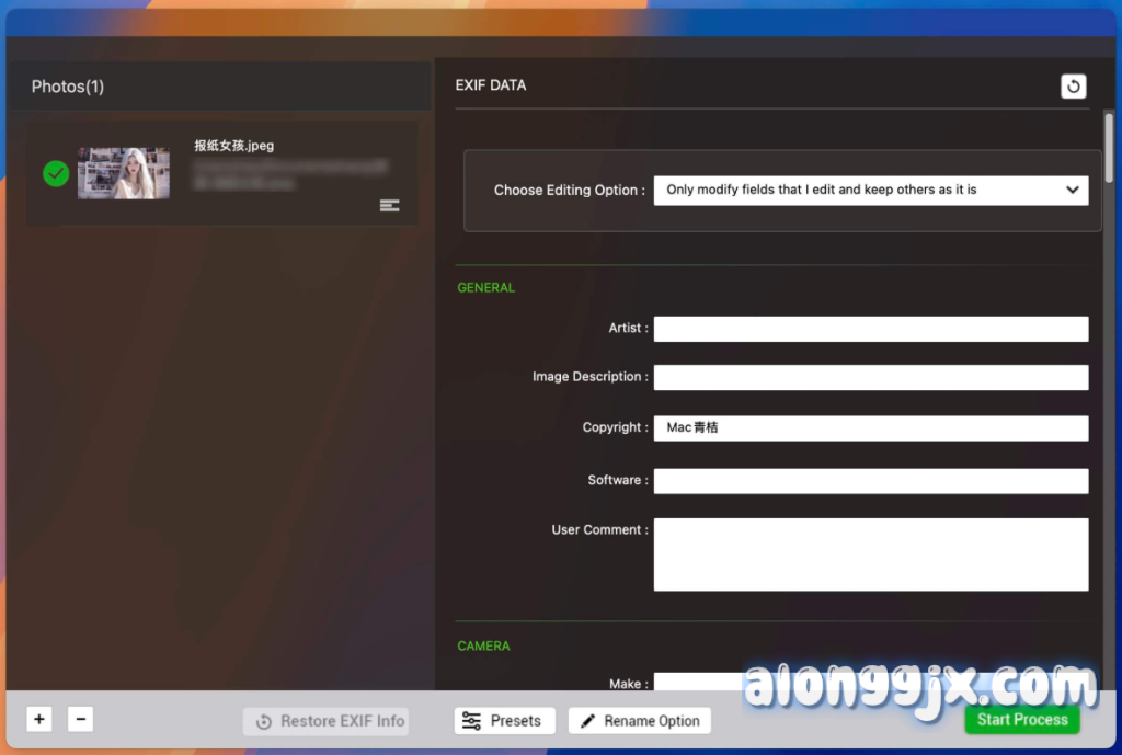 - 设置照片日期时间:可以从 EXIF 信息中设置照片的修改或原始日期时间。