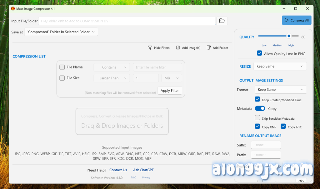 Mass Image Compressor 是一款 Windows 桌面端的批量图片压缩软件,可一次性把 JPG、JPEG、PNG、BMP、TIFF 等格式压缩到指定大小或百分比,内置 MozJPEG、WebP、OxiPNG 三套编码引擎,支持保留 EXIF、批量重命名、文件夹递归、命令行静默调用,压缩率 70-90% 且肉眼无损,是电商上架、网站建站、公众号配图、打印前优化的免费轻量化利器。