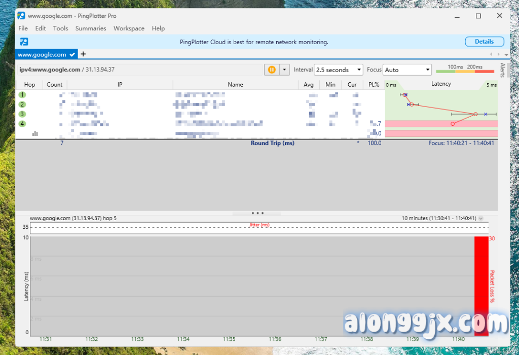 PingPlotter Professional 是一款功能强大的网络性能分析和故障排查工具,专为网络管理员和专业人士设计。它能够实时监控网络连接,提供详细的网络延迟、丢包率和路由信息,帮助用户快速定位网络问题并优化网络性能。无论是企业网络管理还是个人用户优化网络体验,PingPlotter Professional 都是不可或缺的工具。