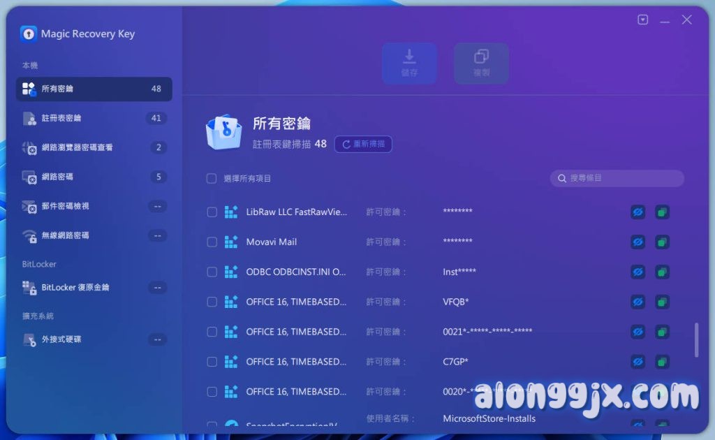 Magic Recovery Key是一款专业的软件许可证密钥恢复与备份管理工具。该软件能够快速检索Windows系统、Office办公软件及其他上万种应用程序的产品密钥,支持BitLocker恢复密钥提取,有效防止因系统重装或硬件故障导致的许可证丢失问题。