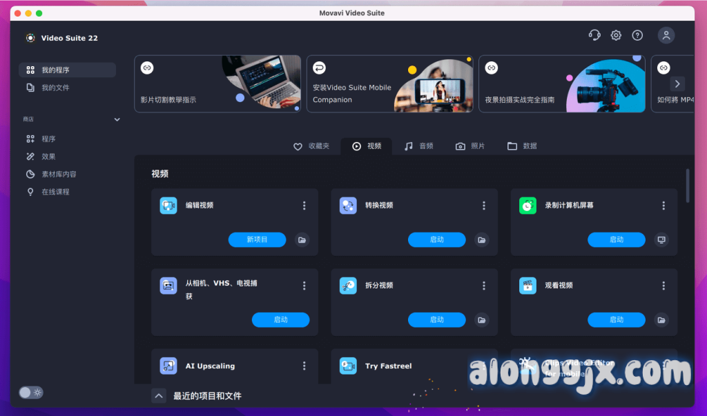 Movavi Video Suite 2022 for Mac 是一款集视频剪辑、格式转换、屏幕录制、光盘刻录与媒体播放于一体的 macOS 全功能多媒体套件,它通过统一界面将五大工具整合为“导入-编辑-导出-分享”一条龙工作流,让零经验用户在 30 分钟内即可完成从素材整理到 4K 输出的完整项目,是 Vlog 博主、线上教育及家庭影音珍藏的高效一体化解决方案。