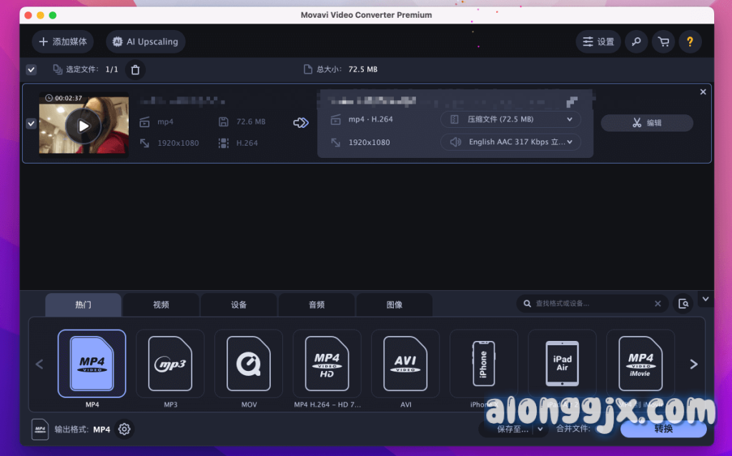 - 设备优化预设:内置500+设备预设参数,一键优化视频适配iPhone/iPad/Android等设备