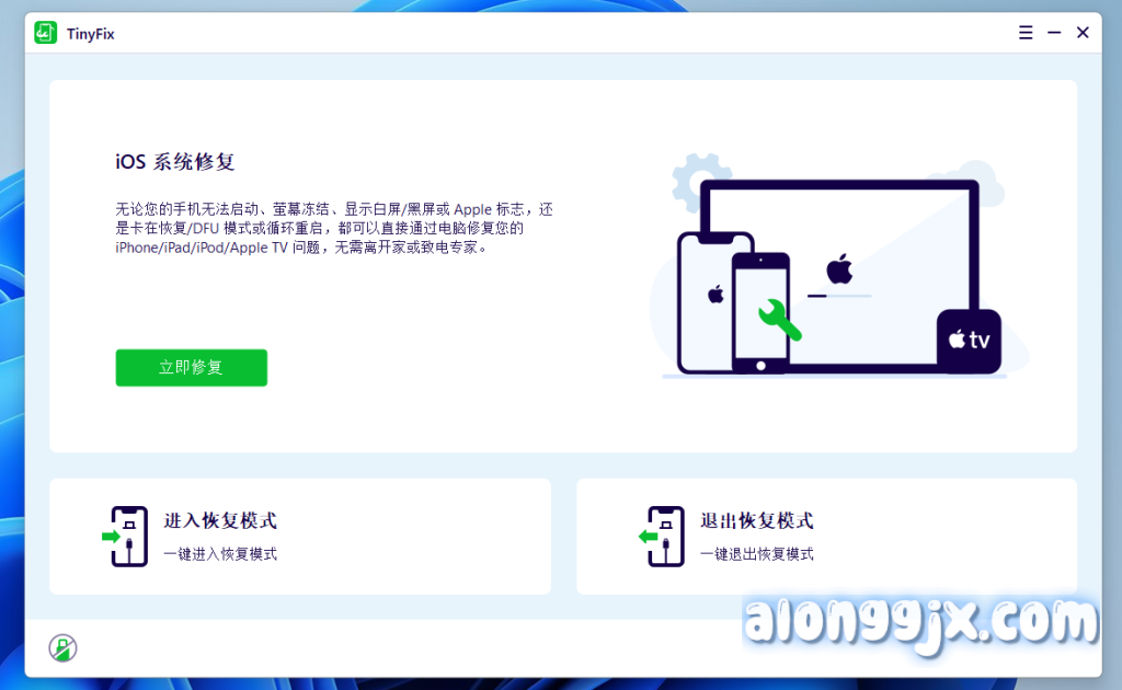 - 一键进入/退出恢复模式:无需手动按键,免费实现恢复模式的快速进入和退出,特别适用于系统更新、越狱或恢复后设备卡死的情况。