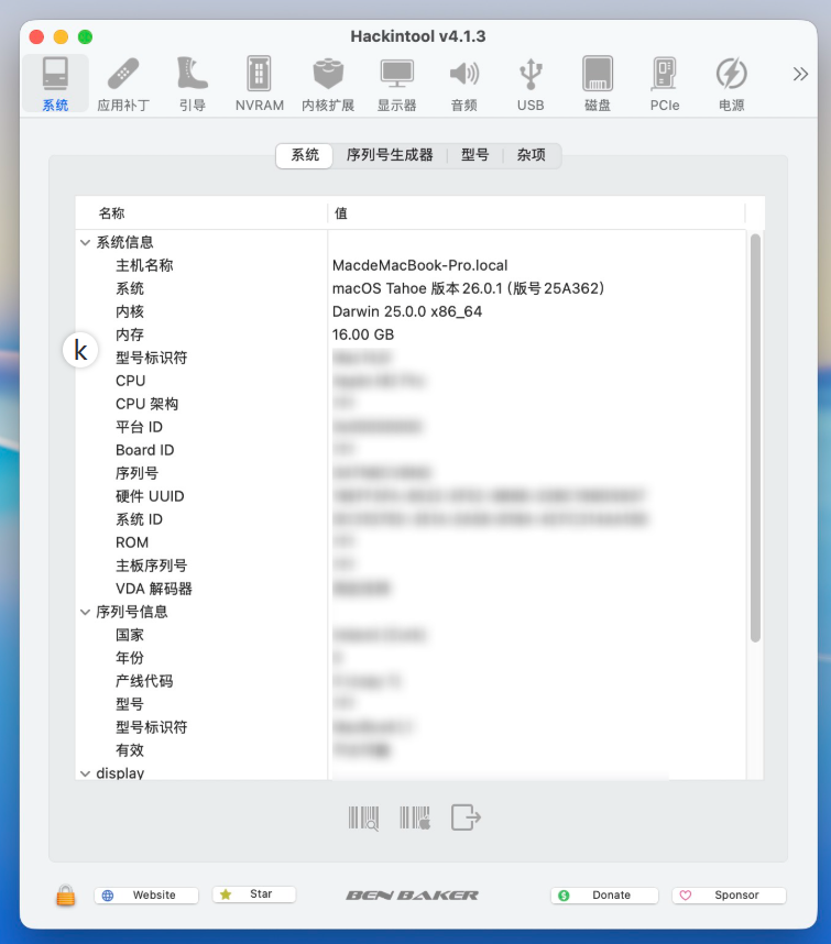 Hackintool是一款专为黑苹果(Hackintosh)系统设计的图形化配置与调试工具,被誉为“原生黑苹果的瑞士军刀”。该工具旨在帮助用户在非苹果硬件上安装和优化macOS系统,尤其专注于解决显卡帧缓冲、音频、USB端口等关键驱动问题。它并非全自动补丁工具,而是需要用户具备一定的黑苹果知识基础,通过直观的界面提供强大的硬件信息检测、补丁生成和系统配置功能,支持从Sandy Bridge到Ice Lake的多代Intel平台,是黑苹果爱好者进行系统调试和优化的必备辅助软件。