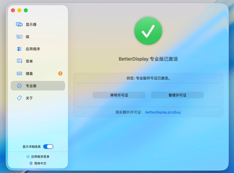 BetterDisplay Pro 是一款功能强大的macOS显示器增强工具,能够专业Mac显示器的全部潜力。该软件提供灵活的HiDPI缩放、XDR/HDR额外亮度调节、虚拟屏幕创建等专业功能,让用户获得更出色的视觉体验。