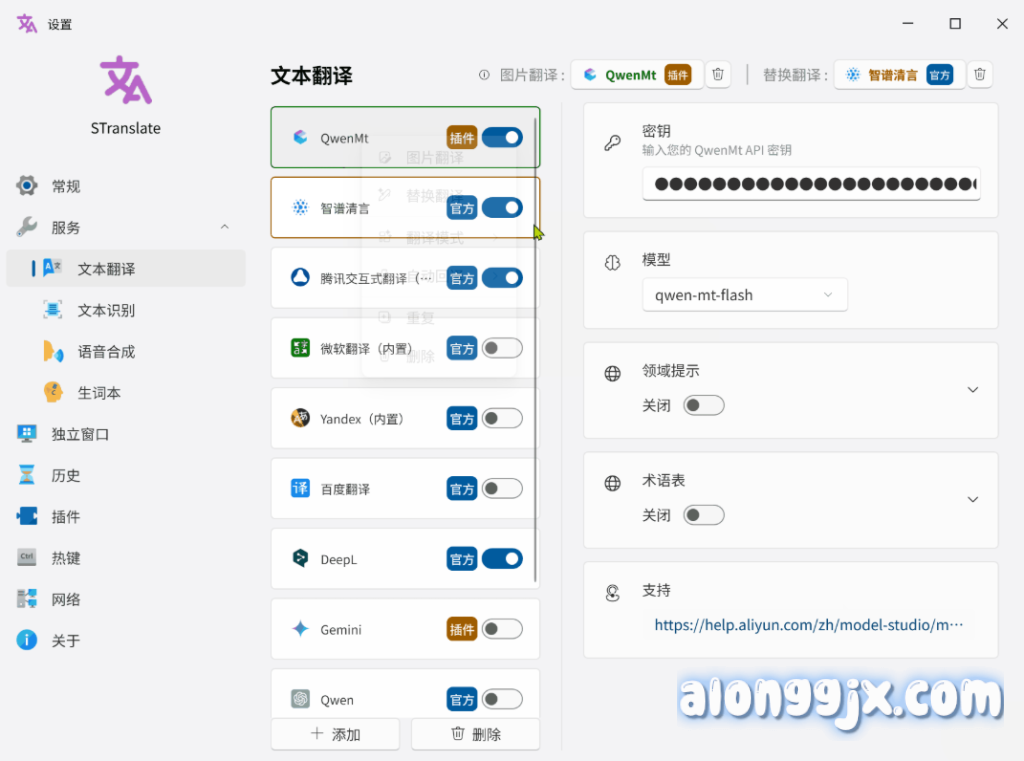 - 灵活的服务配置与管理:用户可以自由添加、管理和切换不同的翻译与OCR服务商,并根据需要配置API密钥,打造个性化的翻译工作流。