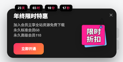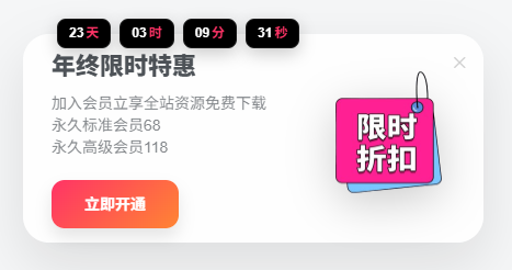在运营网站的过程中,我们经常需要给用户展示一些限时活动,比如“会员特惠”或者“节日活动”。市面上的营销插件要么功能太杂、体积庞大,要么样式过时,很难完美适配像子比这样现代风格。