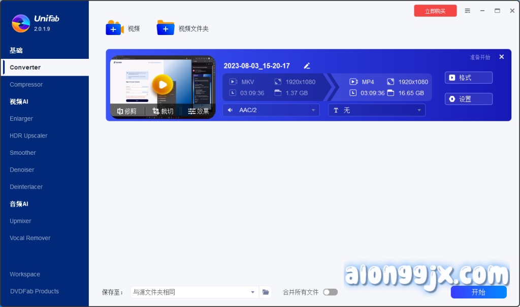 UniFab是一款可高效转换、压缩和编辑 1000 多种视频格式的软件,可在任何设备上播放而不会损失质量。使用 AI 增强器将视频/音频放大至 1080p/DTS 7.1,并将视频升级至 HDR10 或杜比视界。UniFab Pro 提供最好的 AI 驱动的放大器,可让您将视频从低分辨率(如 360p、480p 和 720p)放大到 1080p,而不会损失任何质量。更清晰锐利的图像细节将为您带来非凡的观看体验。