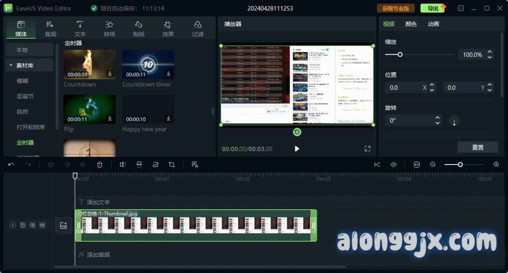 - 动画与特效元素:提供贴纸、倒计时/片头、特效节日装饰等动画元素,可添加马赛克、模糊、缩放等特效,支持添加水印或增强视频片段,丰富视频表现力。