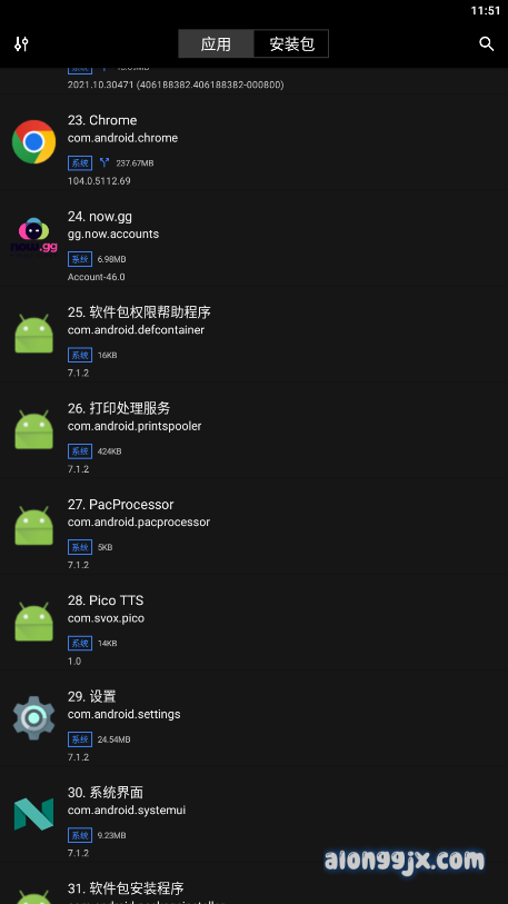 - 按应用程序类型过滤应用程序:系统(预装)或用户(第三方应用程序)