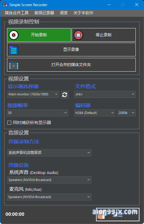 - 使用多个编码器、每秒帧数和比特率以 avi 或 mkv 文件格式录制屏幕