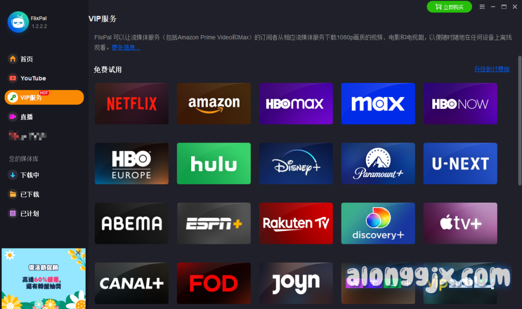 FlixPal是一款流媒体下载工具。它可以成为你最好的朋友,从Netflix、HBO、Disney+、Amazon Prime、Paramount Plus、U-Next、YouTube和200多个离线网站下载流媒体视频。FlixPal不仅让你选择下载电影,还提供批量下载功能,将整个系列的电视节目下载为MP4文件。点播观看直播 FlixPal还支持Twitch等直播网站的下载服务。