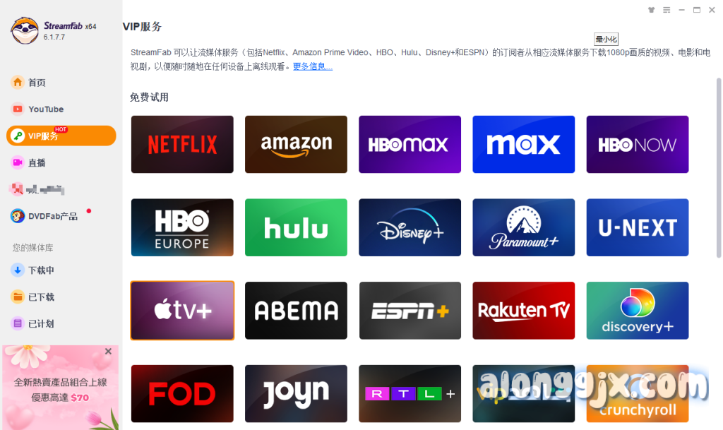 - 从亚马逊、Netflix、Disney Plus等下载视频