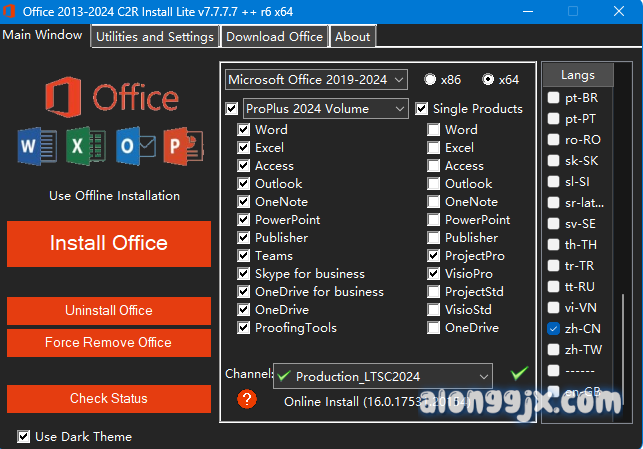 Office 2013-2024 C2R Install 是由 Ratiborus制作的 Microsoft Office 自定义部署工具,支持在线下载、安装和激活 Office 2013 至 2021 版本,提供本地安装、自定义组件安装、零售版转换批量许可版、在线 KMS 激活等功能。