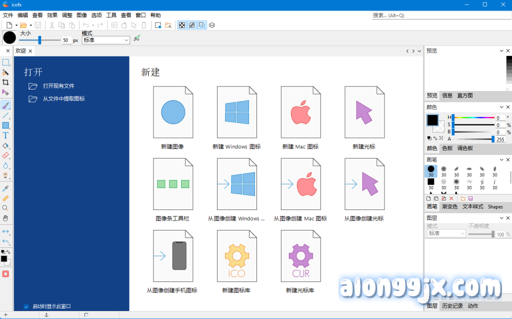 - Icofx 有一个完整的图像编辑器,其中包含许多有用的工具。您可以在绘画时使用不同的画笔尺寸、形状、硬度,甚至混合模式。