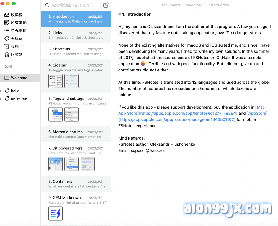 FSNotes 是mac平台上一款轻量级的文本编辑器,它是基于着名的Notational Velocity,它使用Apple的Swift编程语言开发,并通过沙盒进行增强安全性。在FSNotes应用程序的帮助下,您可以创建和管理大量的笔记数据库,而无需使用鼠标。而且每个FSNotes功能都有一个预先定义的键盘快捷键,这使得它成为使用Mac管理大量笔记的最快方式之一。