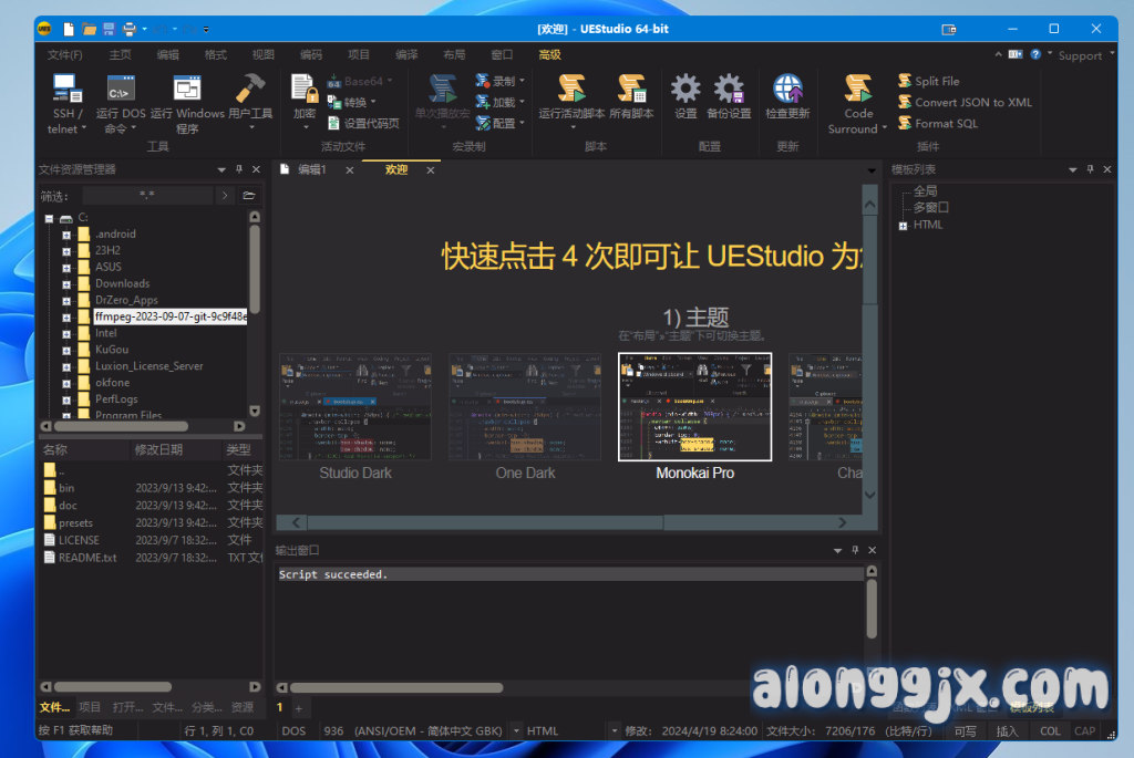 UEStudio 是 UltraEdit 的一个专门针对 Git 开发的版本,它提供了内置的 Git 集成功能,如克隆、检查、更新、提交和推送 / 拉取代码库的操作,使得开发者能够在一个应用中高效地处理源代码的编辑和版本控制。它带有用户友好的分支管理器,帮助开发者轻松地管理和跟踪 Git 分支。UEStudio 包括 UltraCompare,这是一个强大的文本比较和合并工具,可以用来解决冲突文件,预览 Git Markdown,以及直接在应用内比较和合并不同分支或文件版本。此外,它支持直接在 UEStudio 的命令行界面中运行常用的 Git 命令,以及作为 Git difftool 和 mergetool 的本地集成。