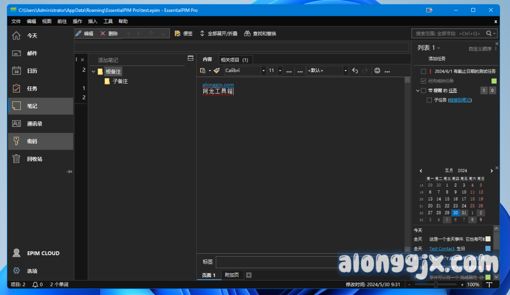 - EssentialPIM 数据存储在安全、快速且可扩展的数据库中