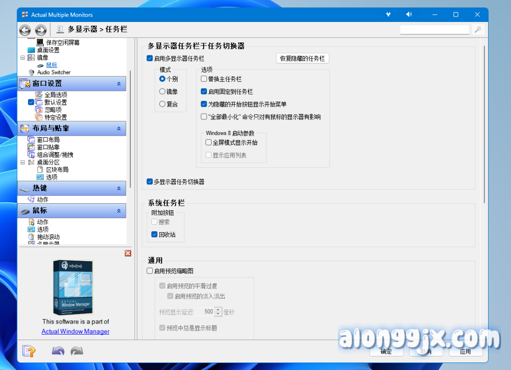 Actual Multiple Monitors 是一款专为 Windows 多显示器环境设计的分屏软件,提供了扩展的任务栏、多显示器游戏支持、自定义热键等功能,旨在提高用户在多显示器配置下的工作效率和使用体验。