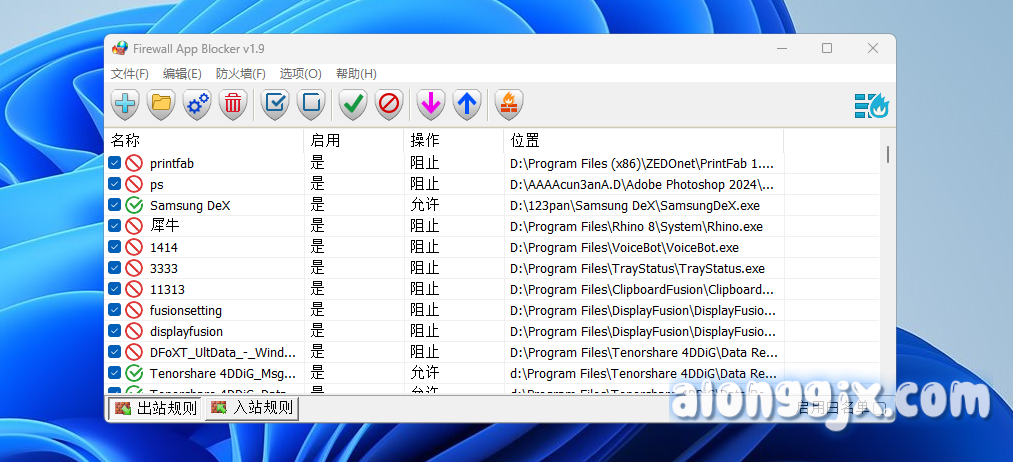 - 快捷添加方式:拖拽目标应用程序到 “出站规则” 或 “入站规则” 窗口完成添加