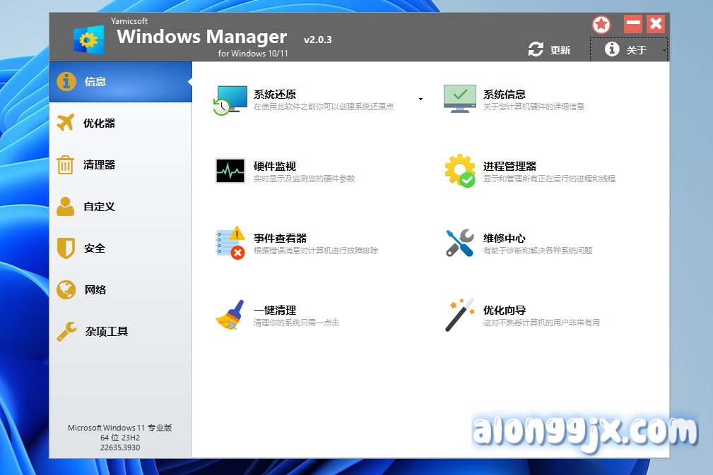 Windows Manager是一款专为 Windows 10/11 设计的综合优化工具,提供超过 40 种不同的实用程序,旨在优化、调整、清理、加快和修复系统,提升系统性能和稳定性,同时增强安全性和个性化选项。