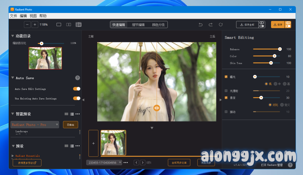 - Radiant Photo 的 AI 能够识别照片内容并自动选择最佳的优化设置,同时用户也可以选择手动调整。