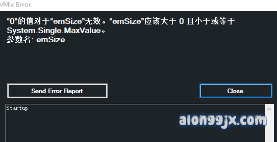 Vmix启动时,弹出如下错误信息,“0的值对于emsize无效”,如图所示