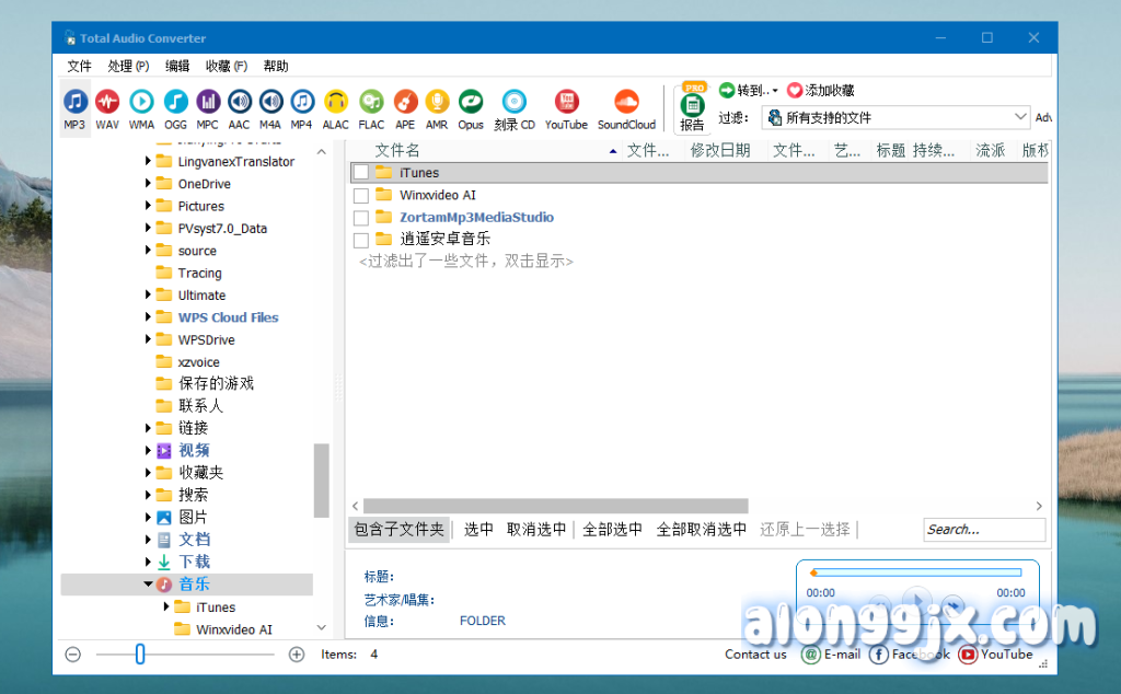 - 支持多种音频格式:包括但不限于 WAV、MP3、OGG、WMA、APE、FLAC、MP4、AAC、MPC 等 24 种格式。