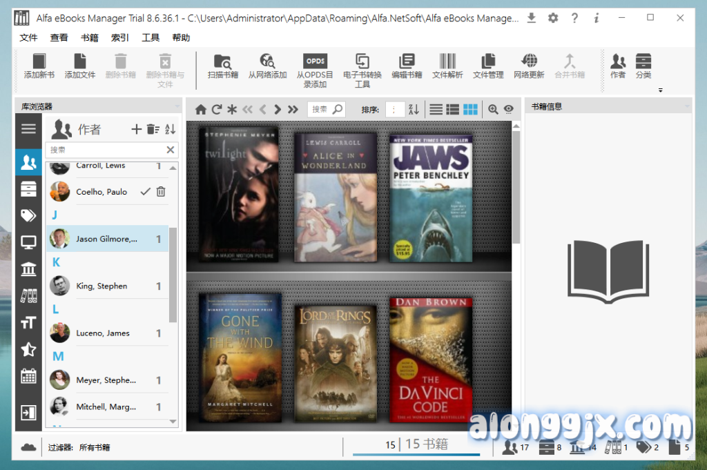 阿尔法电子书管理器(Alfa eBooks Manager)是一款功能全面、易于使用的电子书及图书管理软件,适用于个人和商业图书馆,支持多种电子书格式,提供元数据编辑、阅读器、3D 浏览、Web 界面等功能。