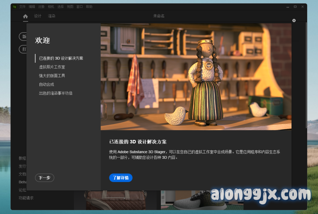 Adobe Substance 3D Stager 是一款专业3D 渲染软件,用于在虚拟舞台上组装和渲染 3D 场景,提供高效的工具和资源,支持与 Creative Cloud 的集成,以及多种格式和物理感知渲染,适合个人、团队和教育用户