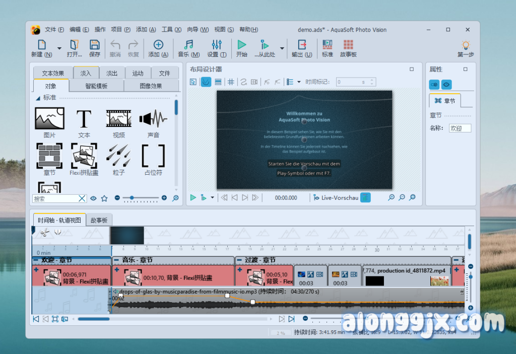 - 全面视频编辑功能:AquaSoft Video Vision 2024 提供剪辑、过渡、动画、声音编辑和后期处理等一站式视频编辑解决方案。