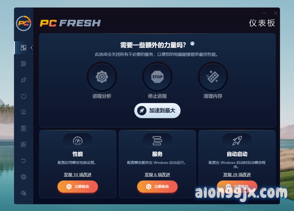 - 一键式性能优化:PC Fresh 提供了一个简单的一键优化功能,可以快速实现系统性能的最大化,使电脑运行更加流畅。