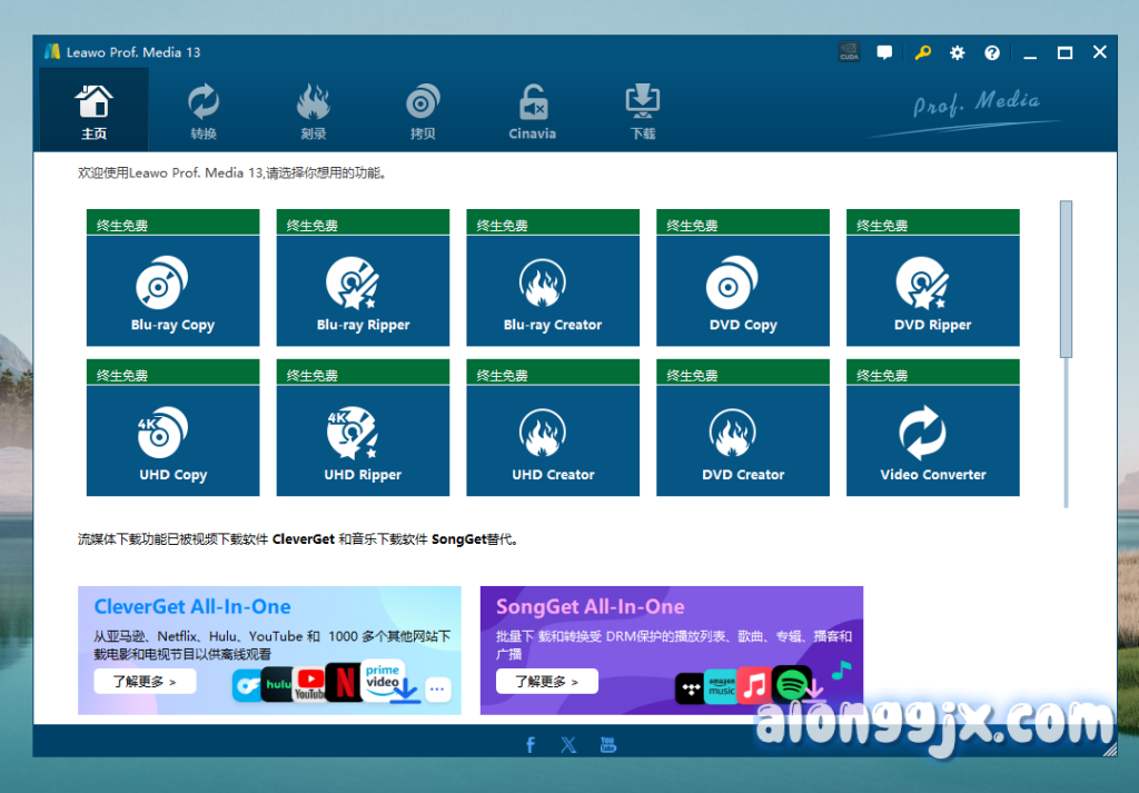 Leawo Prof. Media 是一款集成了 16 大功能于一体的全能媒体转换套件,支持视频、音频、图片、DVD、Blu-ray 和 UHD Blu-ray 的转换、复制、烧录、播放和编辑等多项操作,以及提供了多种其他辅助功能。
